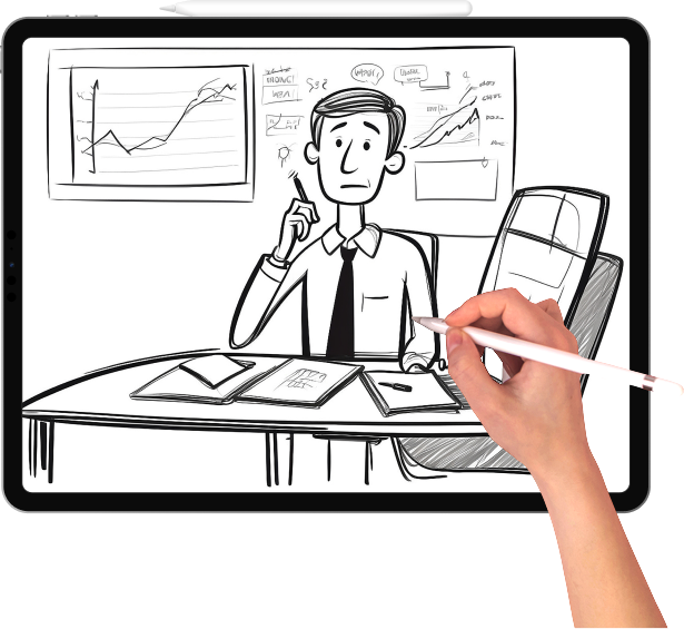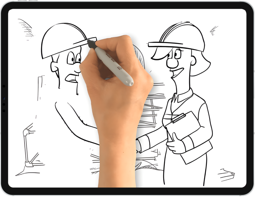 For traditional whiteboard animations, our whiteboard animation experts utilize hand-drawn illustrations on a physical whiteboard. We believe these to be a classic and engaging way to explain complex concepts, making them easily understandable for your audience.